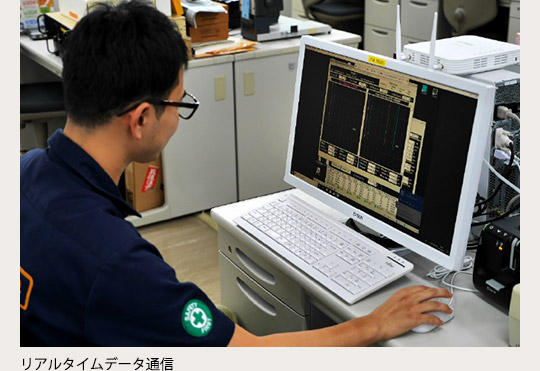 リアルタイムデータ通信システムを使用することにより、掘削現場のモニタリングデータを遠隔地でリアルタイムに閲覧することが可能です。また、収録した深度データや時間データをローカルPCにダウンロードすることができ、測定データの評価を行うことができます。通信には、電話(光)回線やモバイルWi-Fiを利用しますが、電波が届かない場所では衛星通信システムを利用します。お客様がお持ちのパソコン、タブレット、スマートフォンからインターネットのWEBブラウザを利用していつでも簡単にデータにアクセスすることができます。